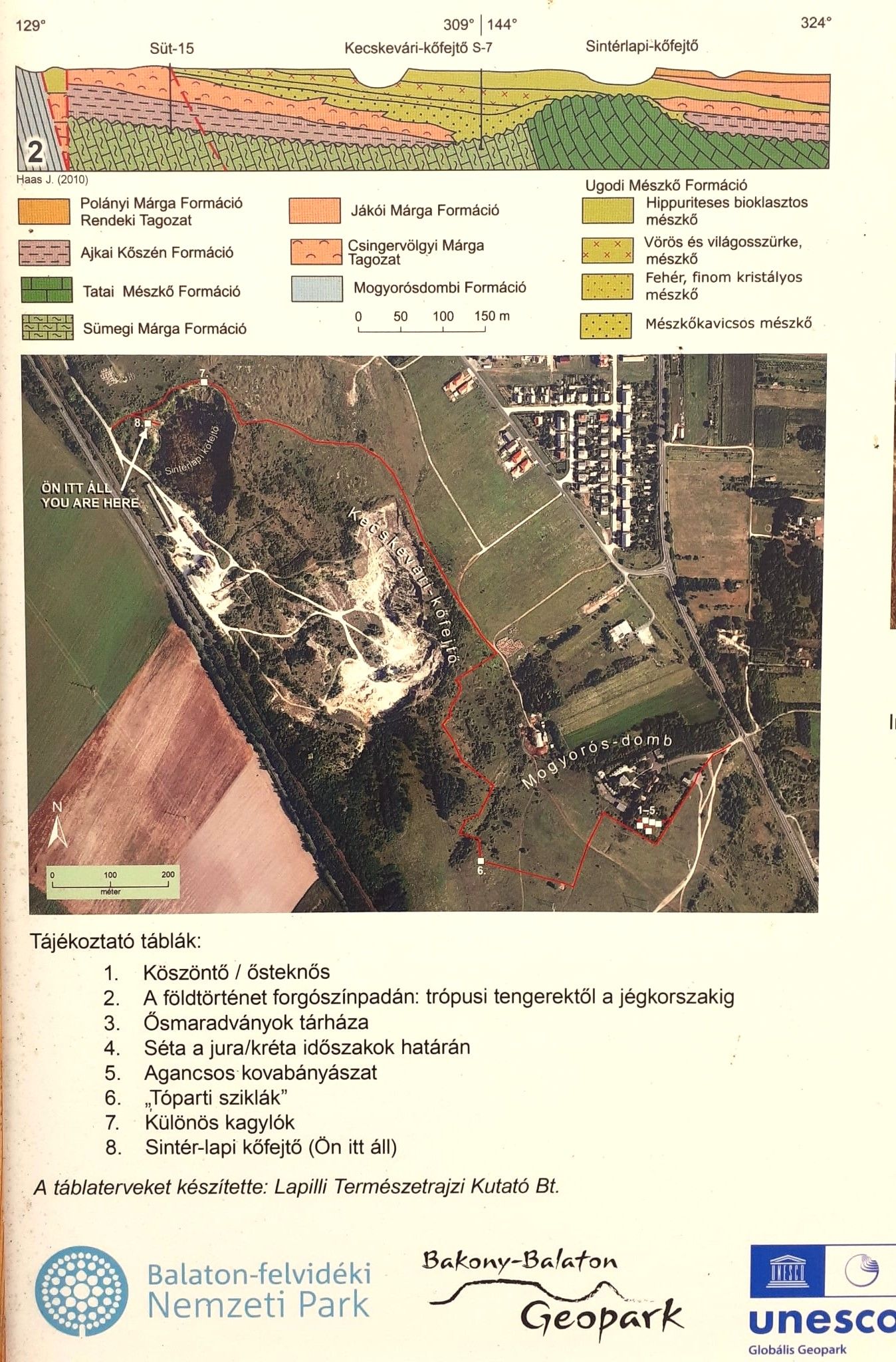 tanösvény Sümeg közelében, amely a terület földtörténeti korait és múltját